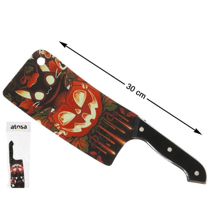 Couteau Décoratif Halloween 30 cm avec Manche à la Citrouille Rouge - Accessoire de Déguisement