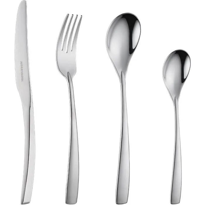 Arthur Martin AM3630 Ensemble de 24 pièces en acier inoxydable 18/10 finition miroir - 6 couteaux, 6 fourchettes, 6 cuillères à soupe, 6 petites cuillères