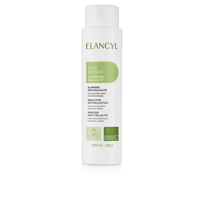Crème contre la cellulite ELANCYL SLIM DESIGN DAY par la marque ELANCYL. Ce soin antiselulite est spécialement conçu pour combattre les cellules graisseuses tenaces. Grâce à un complexe de caféine 3D, il agit sur trois éléments clés responsables de la formation de la cellulite : l'élimination, le drainage et la tonification. Son effet ultra-lissant est ressenti immédiatement, et des études montrent une efficacité constatée dès une semaine d'utilisation. Sa texture légère et sensorielle favorise un massage plus agréable et une absorption optimale. À ne pas utiliser durant la grossesse ou l'allaitement.