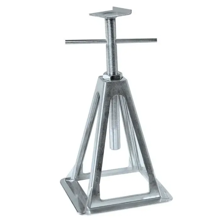 Ces chandelles de stabilisation en fonte d'aluminium sont idéales pour une utilisation intérieure ou extérieure. Elles offrent une grande surface d'appui pour une stabilité optimale et peuvent etre empilées pour un stockage facile. Robustes et légeres, elles sont réglables en hauteur de 29 a 44 cm et peuvent supporter une charge maximale de 1000 kg par chandelle.