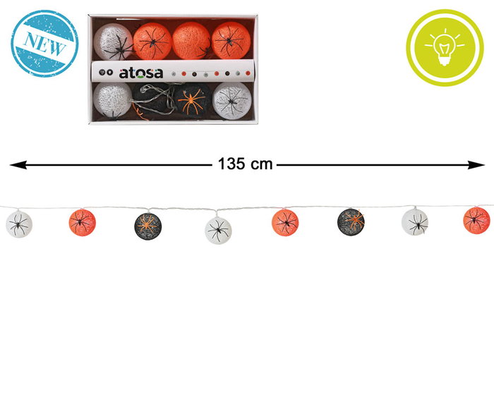 Guirnalda Decorativa Halloween 135 cm avec 8 Farolillos Toile d'Araignée, Araignées et Lumières LED, Blanc, Orange, Noir