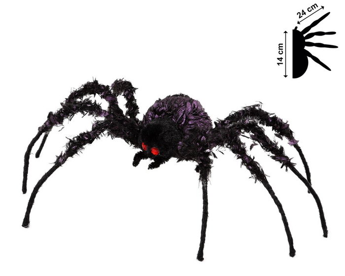 Avez-vous peur des araignées ? Si c'est le cas, ce puissant accessoire décoratif pour vos fêtes d'Halloween pourrait vous donner des frissons ! Cette grande araignée noire et violette est une pièce décorative parfaite pour la nuit d'Halloween. Elle sera idéale pour décorer une table d'entrée, un buffet, une étagère ou n'importe quel recoin de votre maison.