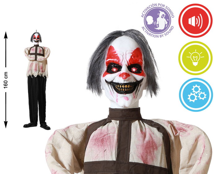 Esqueleto Colgant avec Tunique Rouge et Cheveux Noirs 160 cm avec Lumière et Son - Décor d'Halloween Effrayant avec Détection de Mouvement