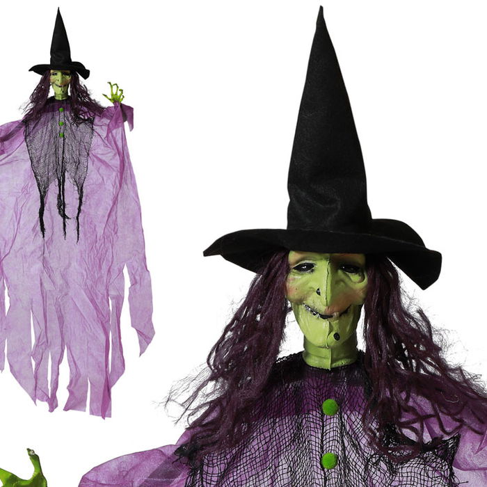 HALLOWEEN Figurine de Sorcière Suspendue Décorative 125 cm, Tunique Violette et Chapeau Pointu Noir, Décoration d'extérieur et d'intérieur