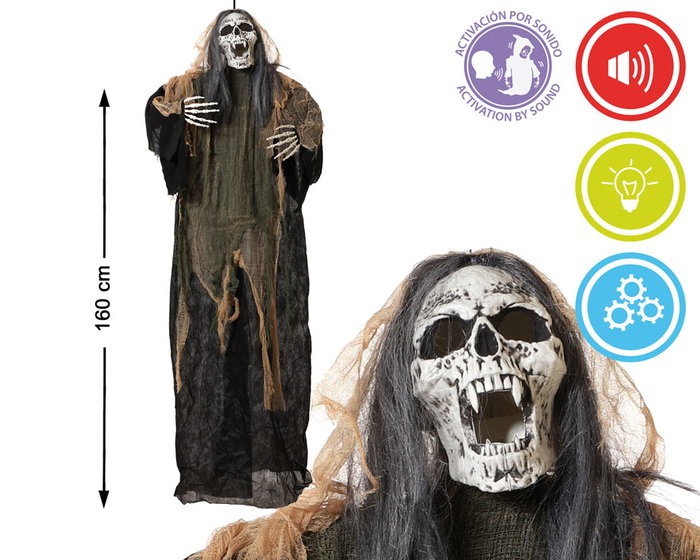 Skeleton Hanging Animatronique 160 X 110 cm avec Lumière, Son et Mouvement pour Décoration d'Ambiance Effrayante