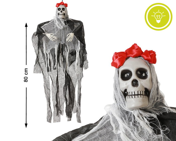 Squelette Suspendu Décoration d'Halloween Éclairé 80 x 70 cm pour Effet Effrayant, Fête Thématique, Intérieur ou Extérieur