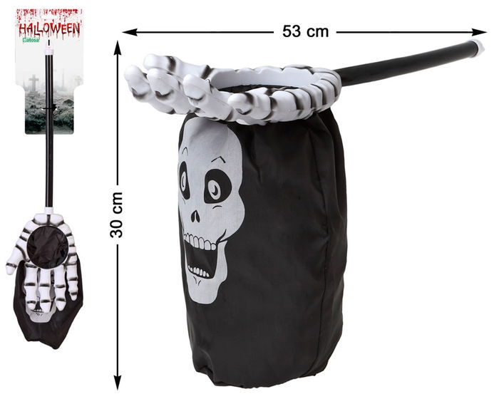 Idéale pour transporter bonbons et gourmandises, cette sacoche à main au design de squelette avec impression de crâne est parfaite pour les plus jeunes. Grâce à sa poignée, les enfants pourront emporter leurs friandises sans difficulté.