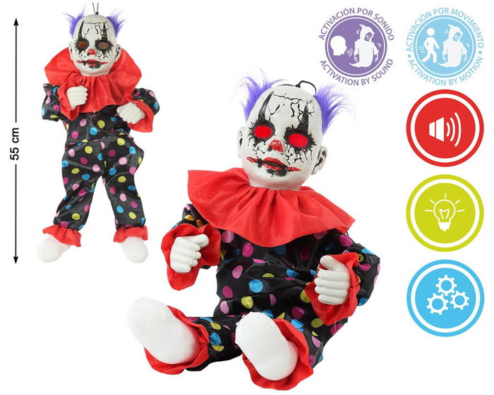 Apportez une touche sinistre à vos événements avec cette effrayante poupée de clown tueur à activation par son et mouvement. Dotée d'un rire glaçant, d'yeux rouges lumineux et d'un maquillage craquelé, elle est l'accessoire parfait pour les entrées d'événements, les passages d'épouvante ou les fêtes sur le thème du cirque de l'horreur. Idéale pour créer une ambiance macabre qui fera dresser les cheveux sur la tête de tous vos invités.