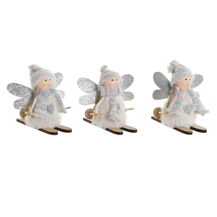 Décorations de Noël DKD Home Decor Blanc Gris Fée 12 x 8 x 10 cm (3 Unités)