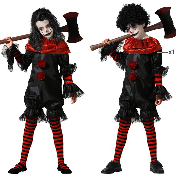 Déguisement Clown Noir à Pois Unisexe Enfant 7-9 Ans, Col Volumineux Style Cirque, Polyester, pour Halloween et Fêtes