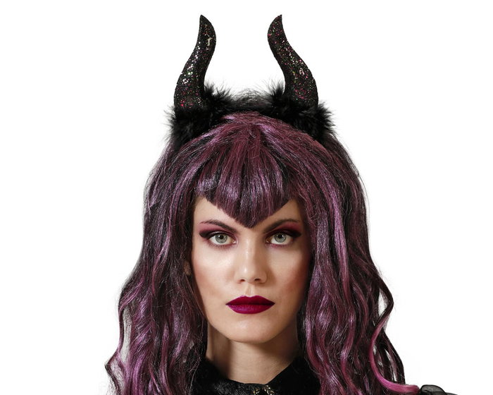 Donnez une touche diabolique à votre déguisement avec cette spectaculaire diadème à cornes noires, accompagnée d'une élégante perruque longue dans des tons violets. Cette combinaison est parfaite pour vous démarquer lors de fêtes à thème, d'événements d'Halloween ou de toute célébration où vous souhaitez montrer votre côté le plus intrigant. La perruque apporte du volume et du mouvement, tandis que les cornes ajoutent une dose de drame et de caractère. Idéal pour compléter des déguisements de diablesse, de sorcière ou de tout personnage terrifiant que vous souhaitez incarner. Devenez l'âme de la fête !