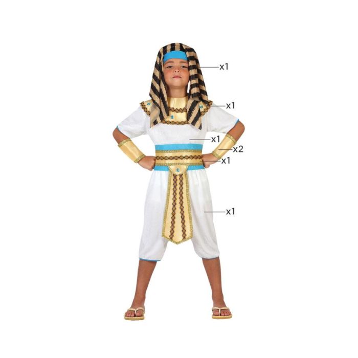 Déguisement Enfant Égyptien Pharaon Blanc Doré 10-12 Ans - Cofia, Tunique, Pantalon, Bracelets, Ceinture