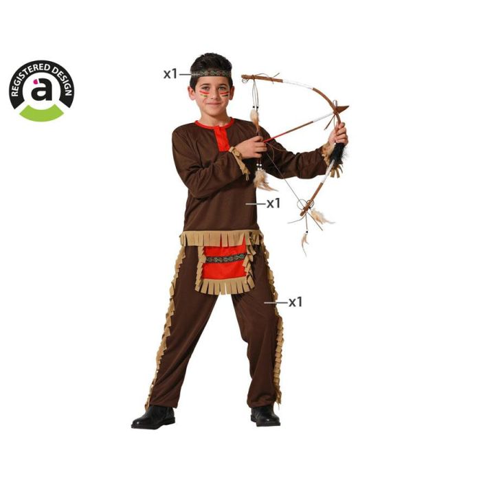 Déguisement Indien Rouge Enfant 7-9 Ans - Le Far West, Marron - Cocarde Incluse