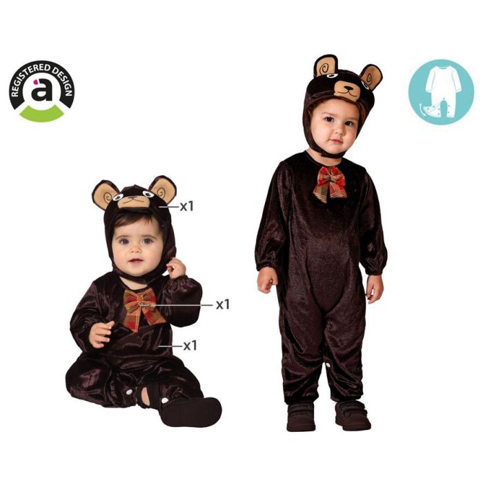Déguisement Ours Marron pour Bébé 12-24 Mois, Capuche avec Tête d'Ours, Mono Boutonné - Polyester Doux - Unisexe