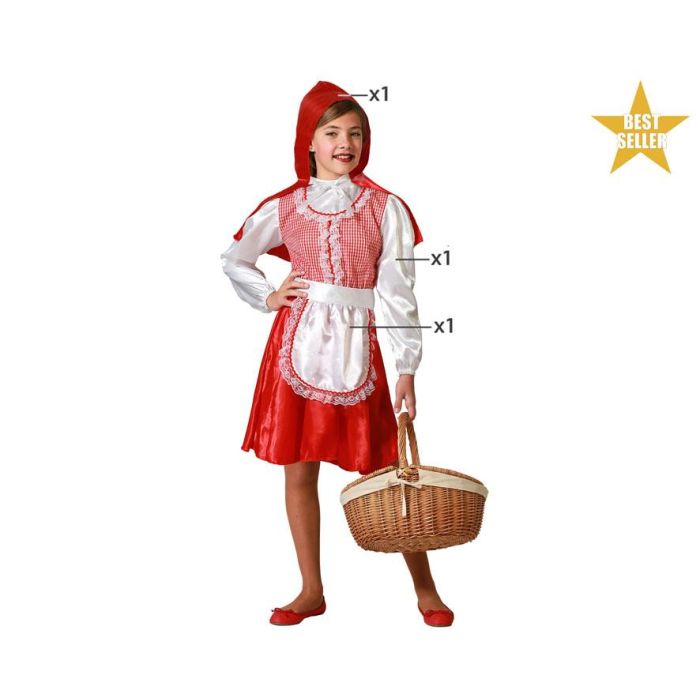 Déguisement Petite Fille Chaperon Rouge 7-9 Ans - Costume enfant avec cape à capuche, chemise, tablier et jupe rouge en polyester pour fête et carnaval