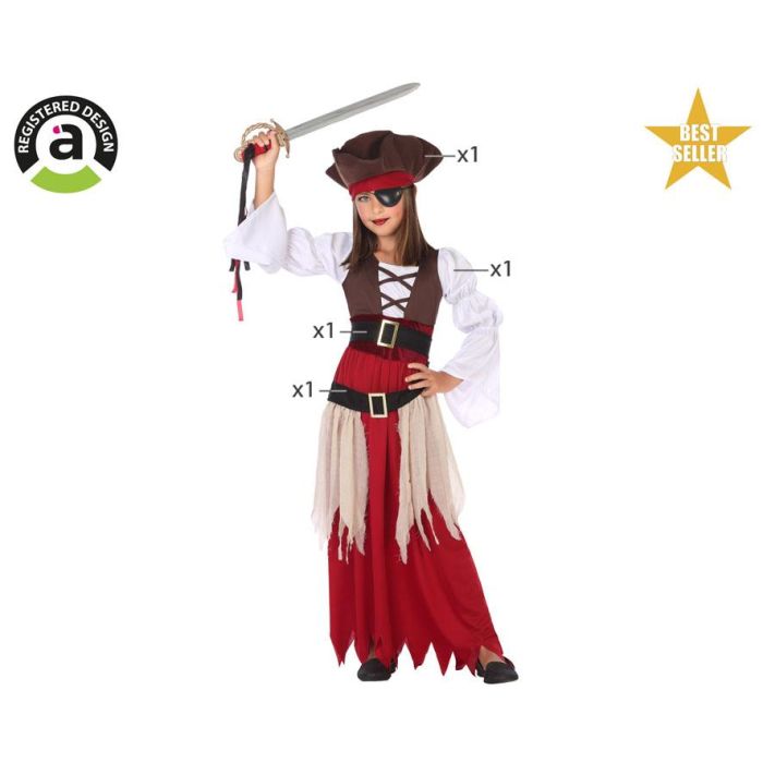 Déguisement Pirate pour Fille, Rouge, 4 Pièces (Robe, Chemise, Ceinture, Chapeau), Taille 10-12 Ans, Polyester, Thème Carnaval, Fête