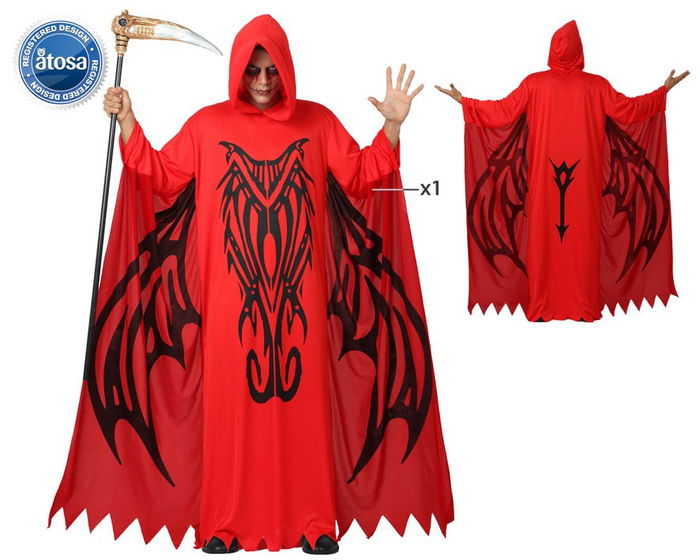 Incroyable costume d'Halloween sur le thème des démons, parfait pour passer une superbe fête d'Halloween ou une nuit des sorcières en famille ou entre amis et s'amuser parmi les monstres, zombies et vampires. Ne manquez pas l'occasion de faire sensation avec ce grand costume de démon conçu pour les hommes et de taille adulte, composé d'une grande tunique avec cape intégrée et capuche.