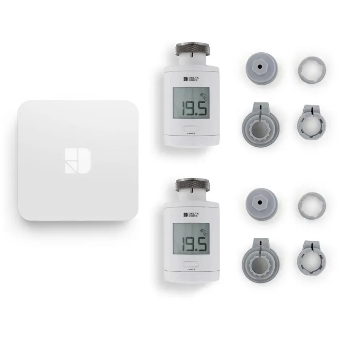 Delta Dore Pack TRV 1.0 connecté 6050664 - Têtes Thermostatiques Intelligentes avec Box pour Contrôle Chauffage à Distance