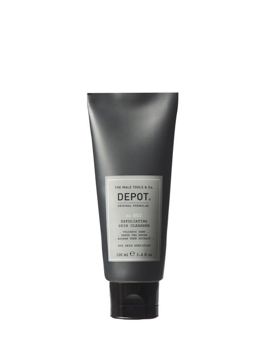 Découvrez le nettoyant exfoliant DEPOT, spécialement conçu pour la peau des hommes. Ce soin fait partie de la gamme Skin Specifics No. 802 et arbore la teinte Sable volcanique. Il offre un nettoyage en profondeur tout en éliminant les impuretés et les cellules mortes pour une peau nette et revitalisée.