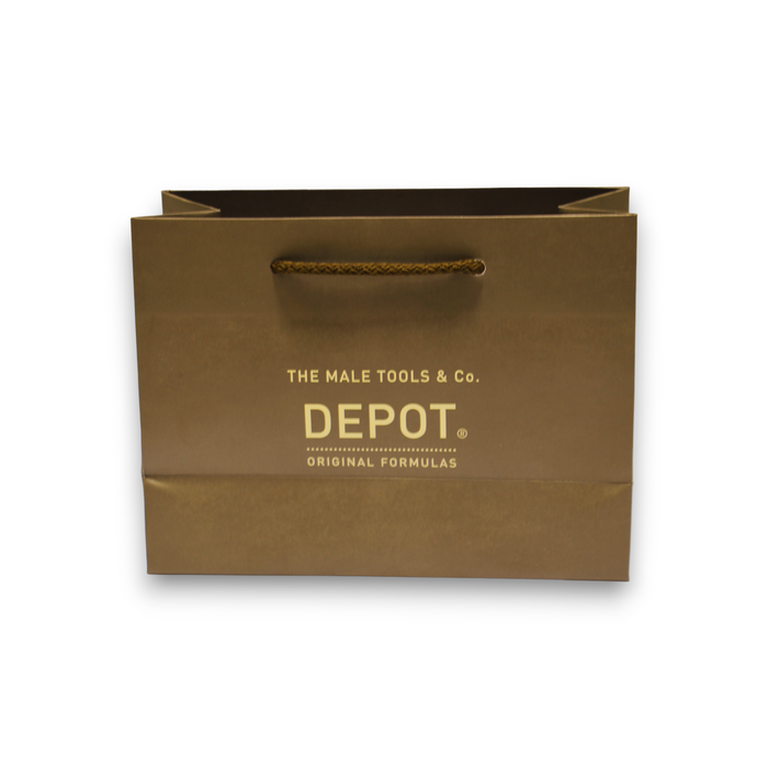 Sac cadeau en carton de la marque Depot, idéal pour offrir. Un accessoire mode unisexe, fabriqué en Italie. Présentation classique.