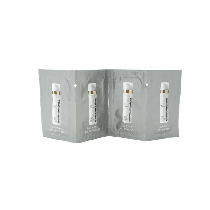 Kit d'échantillons Dermalogica Biolumin-C contenant des produits de soin pour le visage à base d'acide glycolique et hydratants, sous forme de gel. Cet ensemble est idéal pour découvrir la gamme avant d'acheter les produits en taille réelle.