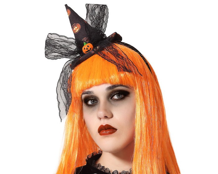 Cette diadème de sorcière avec citrouilles et nœud de dentelle est l'accessoire idéal pour un costume joyeux et coloré. Le contraste entre le noir et l'orange évoque l'essence d'Halloween. Idéal pour les personnages festifs, les costumes de magicienne ou les spectacles pour enfants. Il apporte originalité et charme à toute célébration thématique.