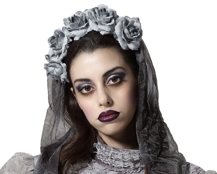Diadema Diadème Couronne Halloween Novia Mariée Zombie Femme Adulte Gris Noir pour Événements Gothiques et Terrifiants