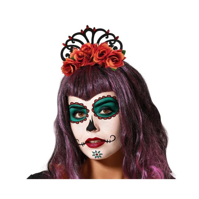 Diadema pour Catrina Día de los Muertos avec Roses Rouges et Couronne Noire - Accessoire de Fête Halloween 2025