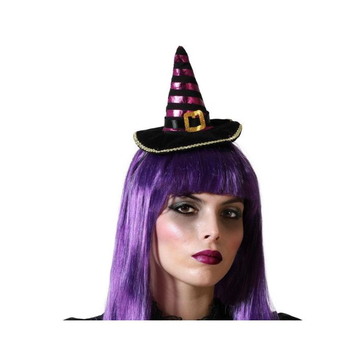 Diadema Sombrero de Bruja pour Halloween, Carnaval ou Fête d'École, Mini Chapeau Décoratif avec Rayures et Boucle Dorées, Pour Enfants et Adultes, Moderne et Original