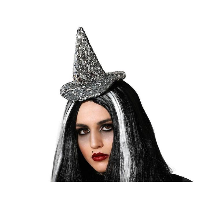 Diadème Chapeau de Sorcière Argenté à Paillettes Brillant Accessoire Déguisement Halloween