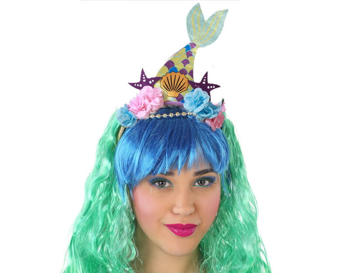 Diadème tête de sirène avec décor floral pour déguisement de fée ou princesse aquatique, costume de fantasy