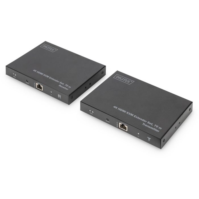 Digitus Kit extender KVM 4K HDMI, 70 m, Émetteur et récepteur, 70 m, Cat6, Cat7, Cat8, Noir, Aluminium, Statut