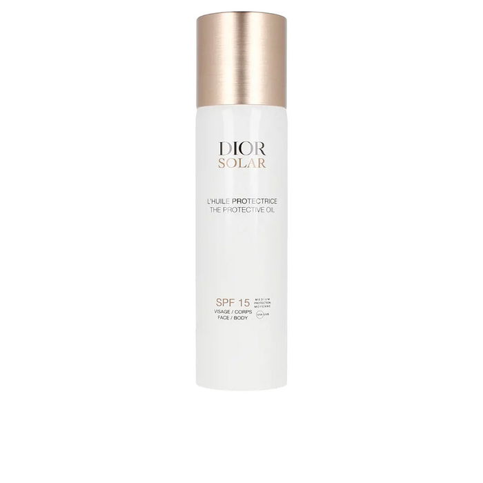 L'huile solaire protectrice DIOR SOLAR, avec son indice SPF 15, assure une protection efficace du visage et du corps. Sa texture légère s'étend facilement, offrant à la peau et aux cheveux un éclat radieux. Enrichie pour nourrir la peau, elle préserve des agressions extérieures et des rayons UVA/UVB. Le bronzage apparaît plus belle et régulier.