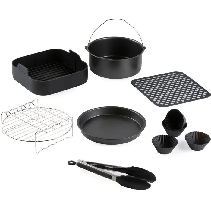 DOMO - Ensemble de 12 accessoires pour AirFryer (6 L) - Noir - Grilles, moules et supports inclus