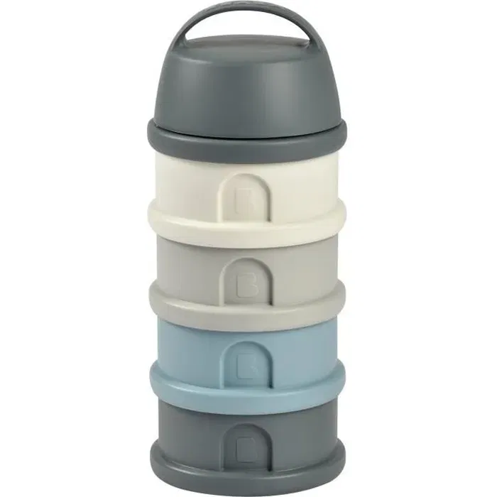 Beaba Boîte Doseuse avec 4 compartiments empilables, hermétique, sans BPA - Mineral Grey / Blue