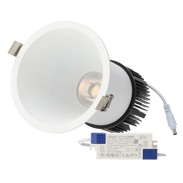 Downlight LED 10W 90Lm/W CRI>95 4000K Blanc Naturel Aluminium Diffuseur Opal/Microprismatique