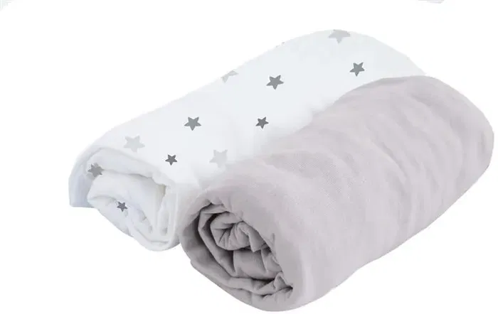 Découvrez ce lot de 2 draps housse en jersey pour enfant. Coloris perle et imprimé étoile. Dimensions 70x140 cm. Marque DOMIVA.