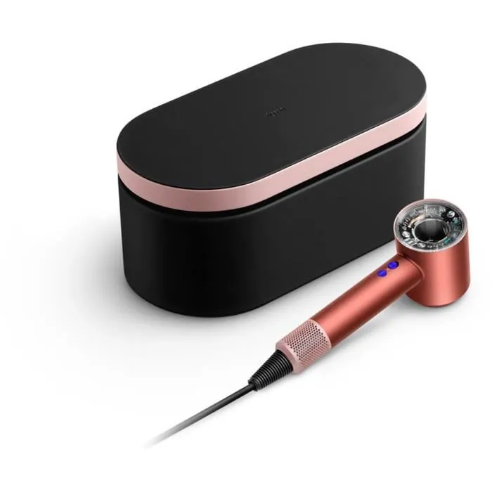 Offrez-vous le Dyson Supersonic Nural Edition Gifting en Fraise cuivré et rose poudré. Ce seche-cheveux de 1600 W utilise une technologie intelligente pour un séchage rapide tout en protégeant vos cheveux de la chaleur excessive. Léger et ergonomique, il est parfait pour obtenir des résultats professionnels a domicile.