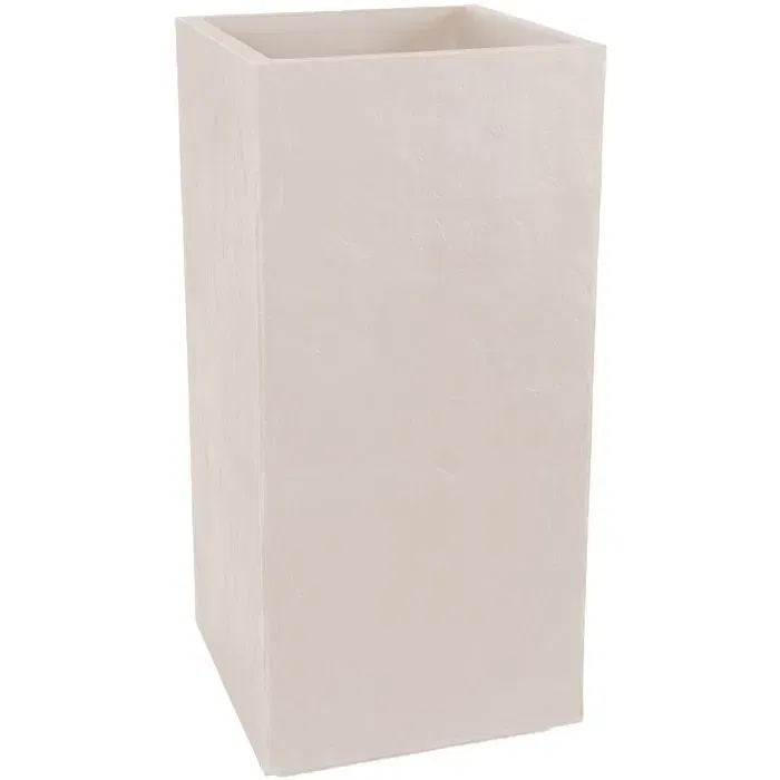 EDA Volcania Bac à Fleurs Carré Haut 40 cm, 31 L - Intérieur/Extérieur - 39,5 x 39,5 x H 80 cm - Beige Calcaire - Label Origine France Garantie