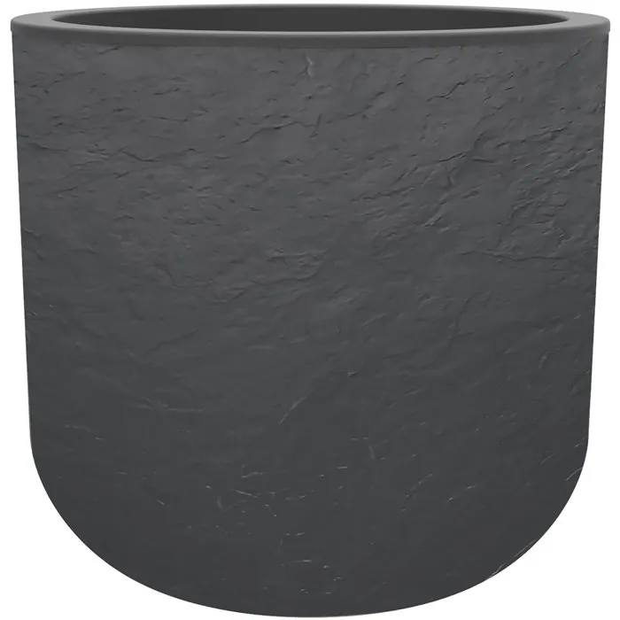 EDA Volcania Up 67 L - Pot de fleurs rond intérieur/extérieur en pierre décorative - Anthracite - Ø 48,5 x H 46,2 cm - Origine France Garantie