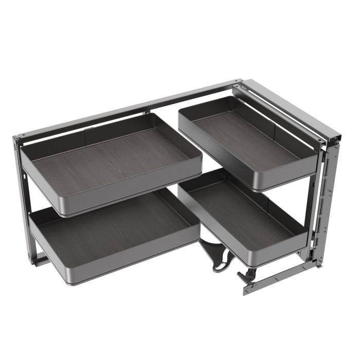 Avec ce système d’angle extractible, chaque coin devient une opportunité de gagner en ordre, accessibilité et design, puisqu’il peut être installé dans des modules d’une largeur comprise entre 900 et 1.100 mm, d’une profondeur minimale de 537 mm et d’une hauteur minimale de 520 mm. Compatible avec des panneaux de 16, 18 ou 19 mm d’épaisseur pour une intégration polyvalente dans différents styles de cuisine.