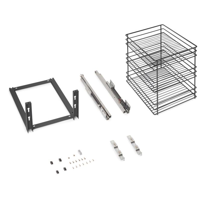 Il intègre des coulisses à rouleaux à extension totale et à fermeture douce, qui garantissent un fonctionnement en douceur, même avec des charges relevables. Son réglage lui permet de s'adapter aux différentes configurations de cuisine, garantissant une intégration parfaite dans n'importe quel design.