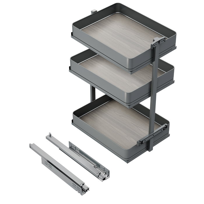 Emuca Chariot extractible Harmony avec fermeture à amortie, Module largeur 400mm hauteur 800mm, Acier et Bois, Gris anthracite