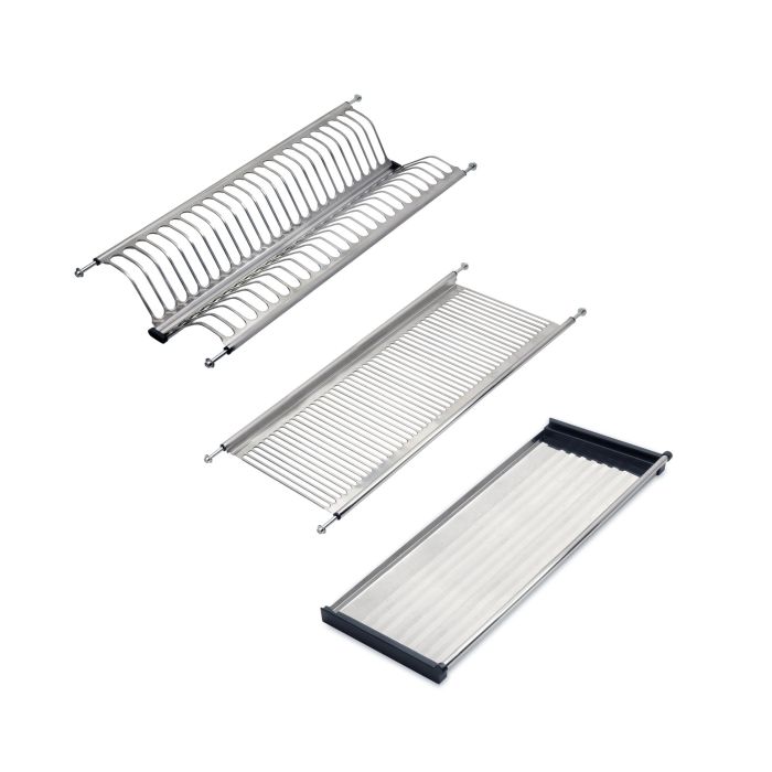 L'Égouttoir Drynox est la solution idéale pour organiser efficacement les assiettes et les conteneurs dans les meubles de cuisine hauts. Ce système complet comprend un plateau supérieur pour les assiettes, un plateau inférieur pour les conteneurs et un égouttoir amovible qui protège les unités de l'humidité et facilite le nettoyage.