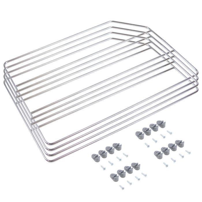 Ensemble de 4 séparateurs métalliques idéal pour faire des divisions dans des armoires, des étagères ou des placards de cuisine. C’est un accessoire qui permet d’organiser les armoires et les tiroirs de différentes manières et sans aucune difficulté, puisque vous pouvez l’adapter aux besoins de rangement.