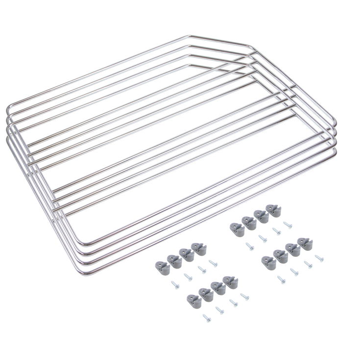 Grâce à son design en fil d’acier chromé, il s’adapte à tous les styles de cuisine. En outre, il se caractérise par sa facilité d’installation dans les meubles grâce au fait que les séparateurs ont des clips qui sont fixés au moyen de vis incluses dans le produit. Les dimensions des séparateurs sont de 500 x 310 mm, il nécessite donc un espace minimum de 310 mm de profondeur.