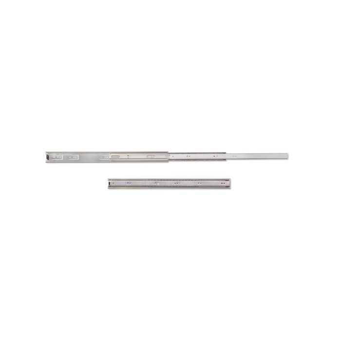 Coulisses à billes à sortie totale fabriquées en acier zingué. Guide de hauteur 45mm. Les vis de montage ne sont pas incluses. Avec gâchette pour le démontage. Charge maximum 30kg.