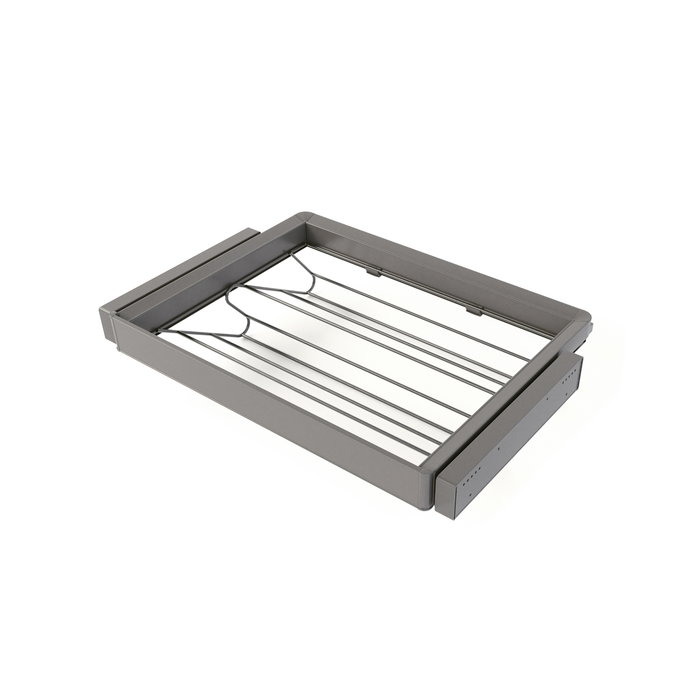 Gagnez en ordre, en visibilité et en fonctionnalité dans votre armoire grâce au kit Quartz : châssis amovible avec fermeture douce et tiroir à chaussures modulaire en finition titane. Un système élégant, aéré et facile à installer.