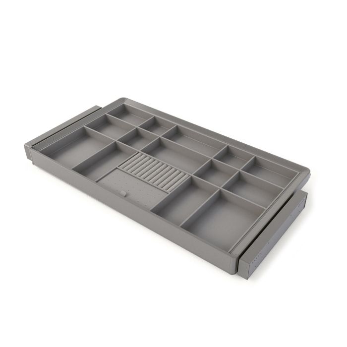 Emuca Kit tiroir organisateur et rack ajustable Quartz pour armoires, glissières extension totale et à fermeture douce, Module 90cm, Finition Titane