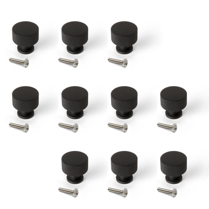 Emuca Lot de 10 boutons pour meubles Argos, diamètre 30mm, Aluminium, Peint en noir
